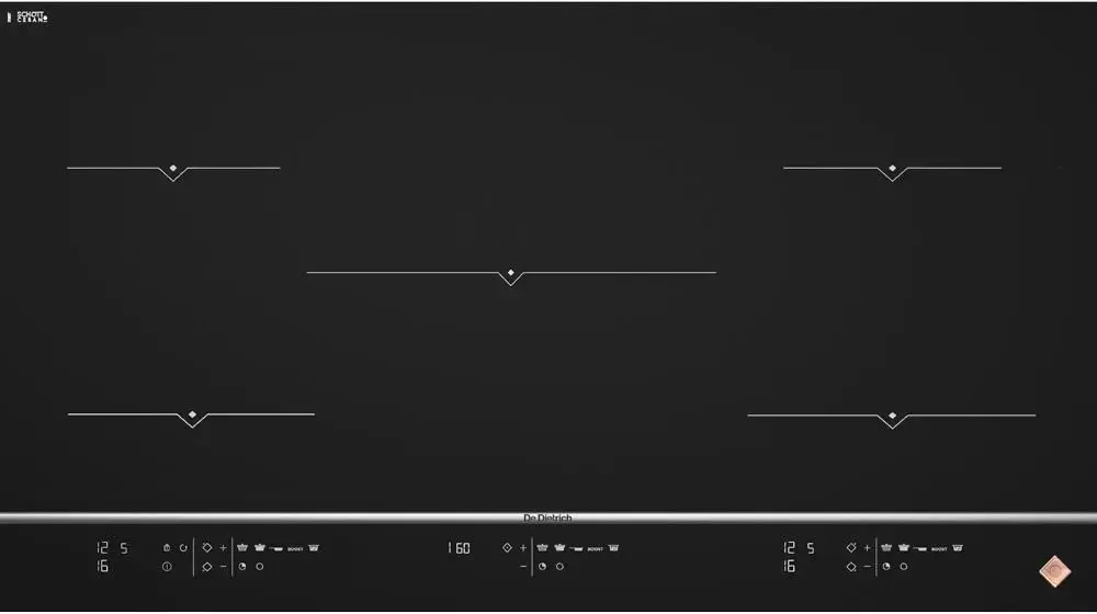 De Dietrich DPI7876X выполнена в классическом черном цвете. Количество конфорок в этой модели: 5. У индукционных варочных зонах находится датчик распознавания размера посуды. |